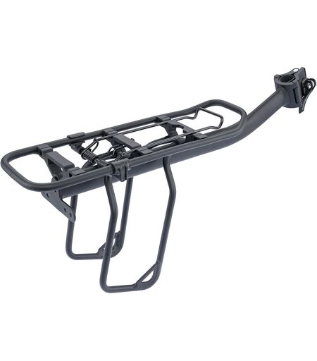 Portapacchi posteriore CONTEC Cricker 24-29, alluminio, attacco reggisella, nero, confezione self-service, adatto per reggisella Ø 25.0 - 31.8mm, incl.Sistema di trasporto MIK, portapacchi sottile e funzionale con molla ferma carico, elegante copertura per l´attacco anteriore, carico max.:10kg ...