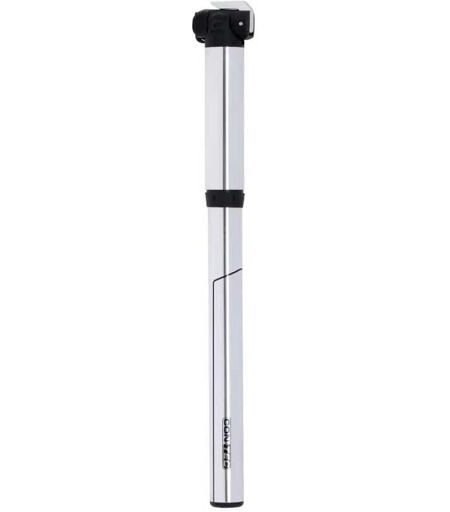 CONTEC mini pompa Air Support Chrome II 8 bar / 120 psi, per tutte le valvole, corpo leggero in alluminio, circa 27 cm di lunghezza, confezione self-service, con tubo flessibile lungo 15 cm, incl.: staffa per occhielli portaborraccia, testina a tripla valvola (Schrader, Presta, Dunlop) ...