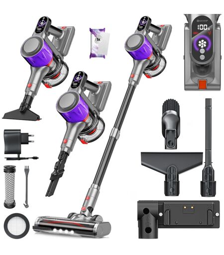 Potente aspirapolvere KESSER: motore da 260 W, potenza di aspirazione di 28 kpa, filtro HEPA (rimozione del 99% della polvere), autonomia di 45 minuti, peso di 2,8 kg, silenziosità di 82 dB, luci anteriori a LED incluse, supporto a parete e disco profumato per una fresca profumazione degli ambienti. Aspirapolvere KESSER - potenza, precisione e freschezza per una casa pulita! L' aspirapolvere KESSER è la scelta perfetta per chi cerca un apparecchio potente, pratico e maneggevole. Con il suo peso complessivo di soli 2,8 kg , può essere utilizzato senza problemi in ogni angolo della casa senza rinunciare all'efficienza. Grazie al motore da 260W e a una potenza di aspirazione massima di 28kpa , l'aspirapolvere aspira in modo particolarmente preciso e accurato , anche quando si tratta dello sporco più sottile. Un punto di forza speciale dell' aspirapolvere KESSER è il sistema di filtri HEPA , che filtra il 99% di tutte le particelle di polvere dall'aria, compresi allergeni, virus, batteri ...