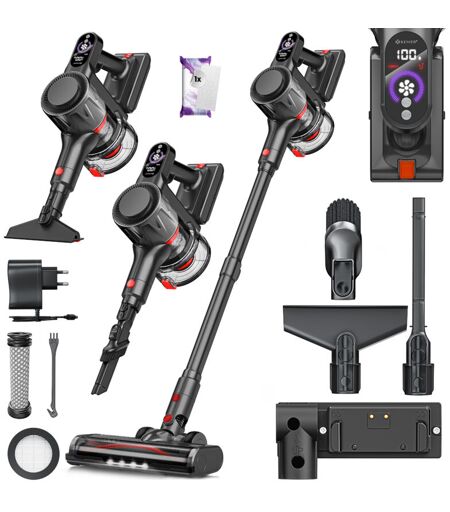 Potente aspirapolvere KESSER: motore da 260 W, potenza di aspirazione di 28 kpa, filtro HEPA (rimozione del 99% della polvere), autonomia di 45 minuti, peso di 2,8 kg, silenziosità di 82 dB, luci anteriori a LED incluse, supporto a parete e disco profumato per una fresca profumazione degli ambienti. Aspirapolvere KESSER - potenza, precisione e freschezza per una casa pulita! L' aspirapolvere KESSER è la scelta perfetta per chi cerca un apparecchio potente, pratico e maneggevole. Con il suo peso complessivo di soli 2,8 kg , può essere utilizzato senza problemi in ogni angolo della casa senza rinunciare all'efficienza. Grazie al motore da 260W e a una potenza di aspirazione massima di 28kpa , l'aspirapolvere aspira in modo particolarmente preciso e accurato , anche quando si tratta dello sporco più sottile. Un punto di forza speciale dell' aspirapolvere KESSER è il sistema di filtri HEPA , che filtra il 99% di tutte le particelle di polvere dall'aria, compresi allergeni, virus, batteri ...