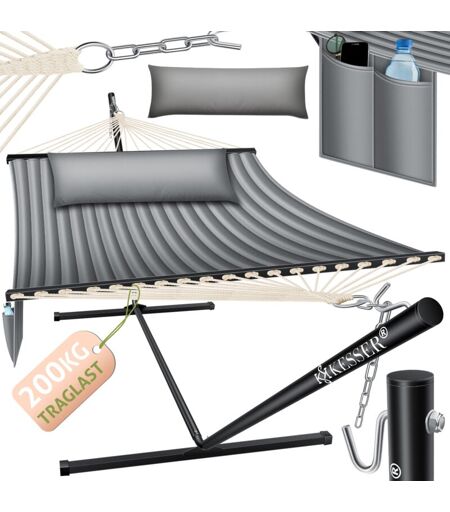 KESSER Amaca hill con telaio Cuscino Amaca doppia per 2 persone-Telaio stabile -200 kg di portata Seggiolone per interni e per esterni Grigio -