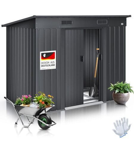 KESSER Capanno per attrezzi l in metallo 3,4 m³ con fondamenta 195x118x182 cm 2x porta scorrevole & fondamenta capanno per attrezzi armadio per casetta da
