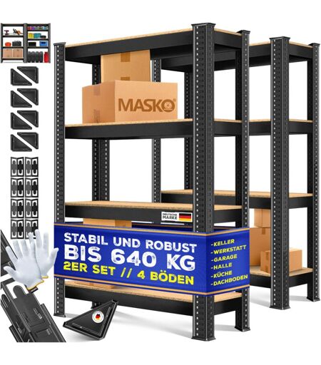 MASKO Set di 2 scaffali , Portata fino a 875 kg, 4 o 5 ripiani regolabili, Pannelli in mdf, Scaffali in metallo, Nero-700kg / 2x 160x80x40cm 4 ripiani