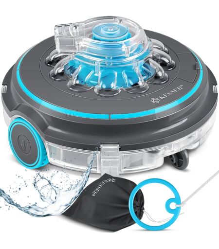 KESSER - Robot per piscine, Batteria pulitore per piscine Aqua-9000 con borsa di trasporto, per piscine fino a 80m², Batteria agli ioni di litio max.