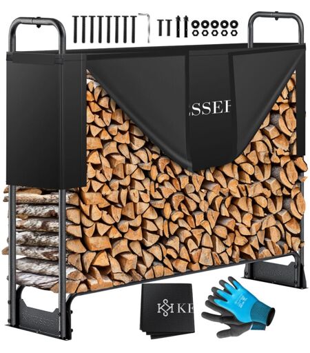 KESSER Rastrelliera per legna da ardere in metallo con struttura esterna in acciaio + coperchio e guanti Supporto per legna da ardere da 200 kg impermeabile