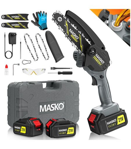 MASKO Mini motosega con batteria 8000mAh Motosega a mano elettrica con 2 batterie 4000mAh per cesoie da giardino/cespugli/taglia legna motosega 800W