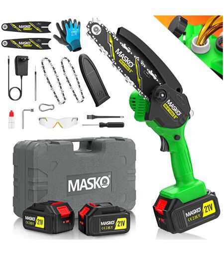 MASKO Mini motosega con batteria 8000mAh Motosega a mano elettrica con 2 batterie 4000mAh per cesoie da giardino/cespugli/taglia legna motosega 800W