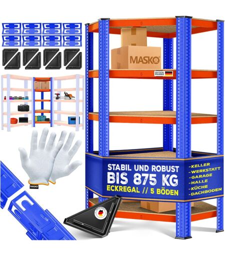 Con il sistema di scaffali angolari MASKO, potrai organizzare e tenere più in ordine il magazzino, l’officina o il garage! Questo scaffale angolare di alta qualità MASKO è composto di metallo zincato e diversi pannelli di MDF. La solida struttura può contenere 175 kg per ripiano. La scaffalatura può essere utilizzata singolarmente o in combinazione con altri scaffali dello stesso tipo, per ampliare la superficie di stoccaggio e soddisfare le diverse esigenze. I ripiani dello scaffale possono anche essere adattati singolarmente, grazie al posizionamento dell'altezza ogni 4 cm, permettendo di conservare una grande varietà di oggetti. Questo scaffale salvaspazio (misure:180 x 75 x 40-75 cm) è ideale per gli angoli inutilizzati e può essere perfettamente combinato con altre scaffalature ad incastro profonde 40 cm, come il nostro scaffale per magazzino. La scaffalatura ad incastro di alta qualità è una soluzione di stoccaggio perfetta, sia per la casa che per le aree commerciali e offre ...