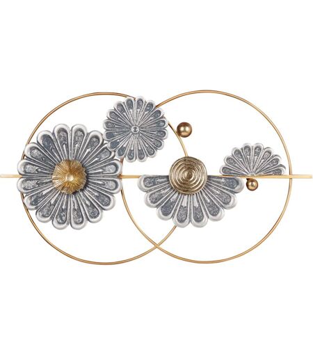 Arte da parete in metallo. Valorizza i tuoi interni con questa squisita decorazione fatta a mano, dal design unico ed elegante. Il complemento d'arredo è realizzato in ferro e garantisce una lunga durata e una facile manutenzione. La composizione è caratterizzata da due cerchi dorati che aggiungono lucentezza al tuo ambiente, mentre gli elementi grigi a forma di fiore emanano un'atmosfera industriale grazie all'effetto consumato. Grazie ai ganci sul retro, quest'opera d'arte può essere appesa sia in verticale che in orizzontale, permettendoti di riorganizzare le tue pareti in diversi modi. Dettagli: Tipo di prodotto: Decorazione da parete Stile: Industriale Colore principale: Oro, Grigio Tipo di materiale: Metallo Materiale principale: Ferro Forma: Irregolare Finitura: Verniciato Realizzato a mano: Sì Orientamento: Orizzontale Dimensioni: Profondità: 3 cm Larghezza: 91 cm Altezza: 51 cm Dimensioni totali: 91x3x51 Peso: 1 kg L`offerta include: 1 x Decorazione da parete Caratteristiche ...