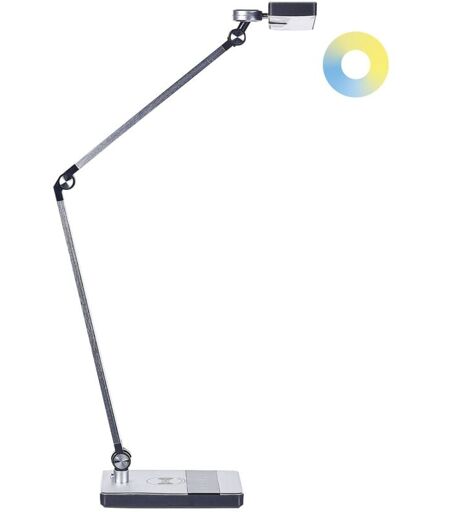 Luce da scrivania con caricabatterie wireless. Dona alla tua area lavoro un look minimalista con questa lampada da lavoro funzionale. Il suo design pulito ed elegante si abbina a qualsiasi spazio di lavoro in stile moderno o industriale. La lampada è facile da mantenere, stabile e durevole perché è realizzata in alluminio. È dotata di un interruttore tattile e di una funzione di variazione progressiva dell'intensità luminosa, che la rende facile da usare. Offre tre livelli di temperatura della luce che saranno perfetti per il relax, la lettura, il lavoro o qualsiasi altra esigenza. Inoltre, ha una funzione di ricarica wireless. Dettagli: Tipo di prodotto: Illuminazione da ufficio Stile: Industriale Colore principale: Argento Temperatura colore LED: Bianco caldo Tipo di materiale: Metallo Materiale principale: Alluminio Materiale secondario: Materiale sintetico Materiale della base: Alluminio Materiale del paralume: Materiale sintetico Parti regolabili: paralume Potenza elettrica: 9 W ...