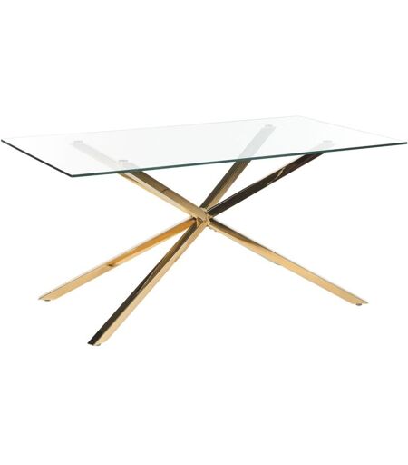 BELIANI Tavolo da pranzo rettangolare con piano in vetro temperato trasparente 160 x 90 cm gambe in oro Cora