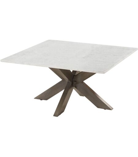Tavolino da salotto in marmo bianco - gambe incrociate in ferro colore ottone antico 137x137 barcelona 306 ...