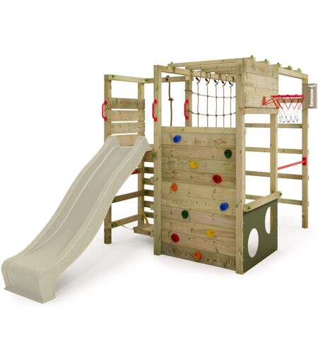 fatmoose Torre da arrampicata ActionArena con scivolo, struttura da giardino con scala e accessori da gioco - verde salvia