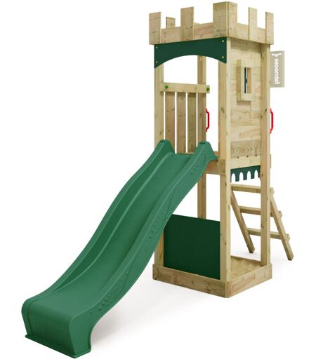 fatmoose Torre gioco TreasureTower con scivolo, torre da arrampicata con sabbiera, scala e accessori da gioco - verde -