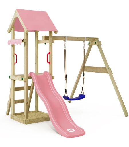wickey Torre gioco TinyWave con altalena e scivolo, torre da arrampicata con sabbiera, scala e accessori da gioco - rosa pastello -