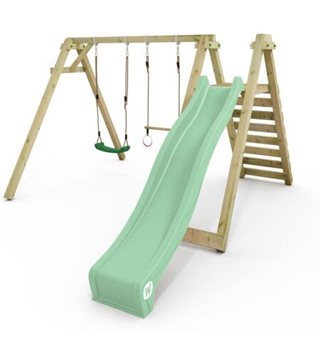 wickey Struttura altalena Smart Swift con scivolo, struttura doppia altalena in legno - verde pastello -