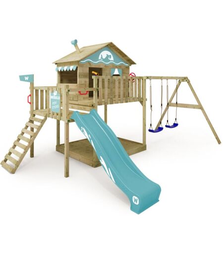wickey Parco giochi in legno Smart Coast Giochi da giardino con altalena e scivolo Casa su palafitte da esterno con sabbiera e scala di risalita per bambini