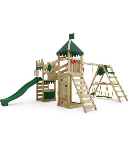 fatmoose Castello RiverRun con altalena SurfSwing e scivolo, casetta da gioco con sabbiera, scala e accessori da gioco - verde -