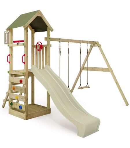 fatmoose Torre gioco KiwiKey con altalena e scivolo, torre da arrampicata con sabbiera, scala e accessori da gioco - verde salvia -