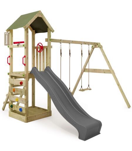 fatmoose Torre gioco KiwiKey con altalena e scivolo, torre da arrampicata con sabbiera, scala e accessori da gioco - antracite -