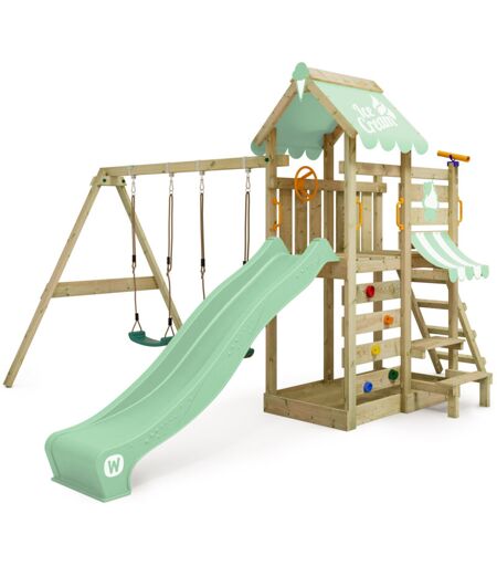 wickey Parco giochi in legno VanillaFlyer Giochi da giardino con altalena e scivolo Torre d'arrampicata da esterno con sabbiera e scala di risalita per