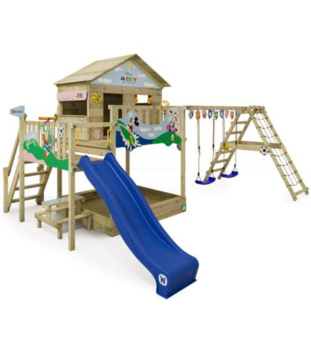 wickey Parco giochi in legno Disney Quest Giochi da giardino con altalena e scivolo Casa su palafitte da esterno con sabbiera e scala di risalita per