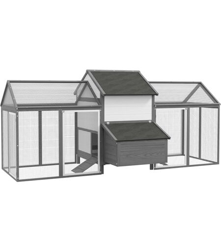 Pawhut Pollaio Recinto per Piccoli Animali con 2 Recinti Esterni, 1 Nido, 2 Rampe, Tetto in Asfalto, Resistente alle Intemperie, Grigio Aosom Italy