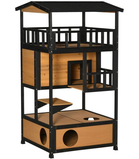 Pawhut Casa per Gatti Gattiera Casa per Gatti da Esterno, resistente alle intemperie, 75,5 cm x 75 cm x 137 cm, Giallo Aosom Italy
