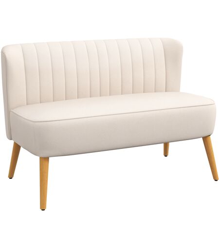 Homcom Divano Design Retrò a 2 posti, Gambe in Legno, 117 cm x 56,5 cm x 77 cm, Avorio