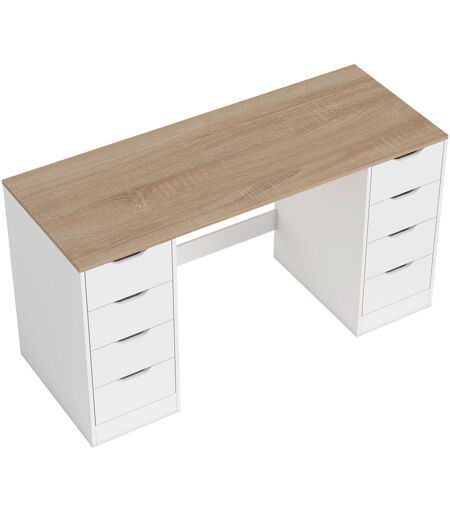 Homcom Scrivania con 8 cassetti, salvaspazio e stabile, 140 c, Bianco e Legno naturale Aosom Italy