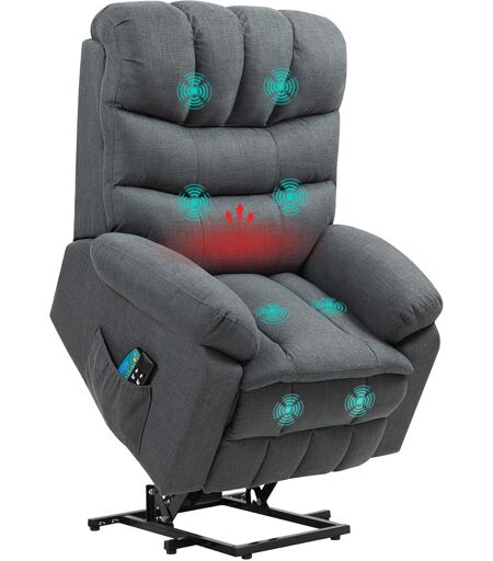 Homcom Poltrona per alzarsi, poltrona reclinabile con funzione massaggio, poltrona imbottita con funzione alzante, Metallo, Tessuto, Grigio Aosom Italy