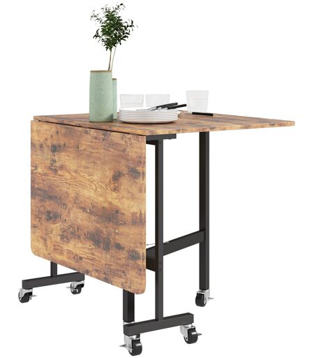 Homcom Tavolo da cucina pieghevole tavolo da pranzo pieghevole con 2 abbattibili 6 ruote per 4-6 persone 120 x 80 x 73 cm, marrone rustico