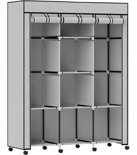 Homcom Armadio in tessuto, con 8 ripiani e 2 barre appendiabiti, Grigio Aosom Italy