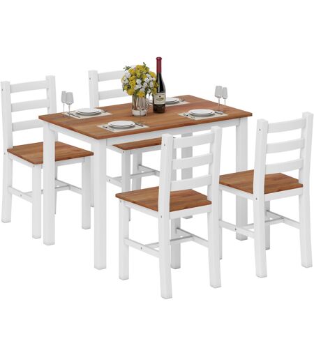 Homcom Set da Pranzo, Tavolo da Pranzo, 4 Sedie, Set da Soggiorno, Pino, Marrone+Bianco Aosom Italy