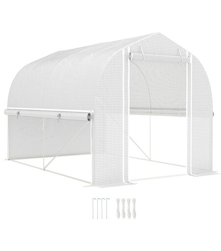 Outsunny 3 x 2 x 2 m Serra a tunnel in polietilene con lati avvolgibili, copertura in plastica resistente ai raggi UV e struttura in acciaio zincato, Bianco