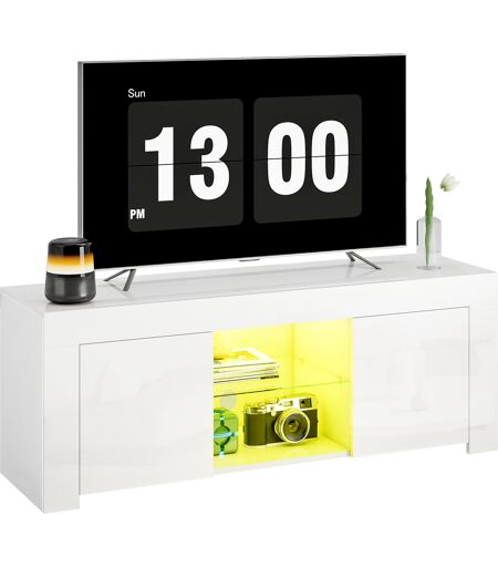 Homcom Mobile TV con Illuminazione LED, 2 Porte Armadio, Ripiano in Vetro, Passacavi, per Soggiorno, Truciolato, Bianco Aosom Italy
