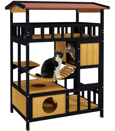 Pawhut Casa per gatti, Paradiso per Gatti con Piattaforme, Ponte Oscillante e Grotte per Gatti, Adatta per 2 Gatti, Legno