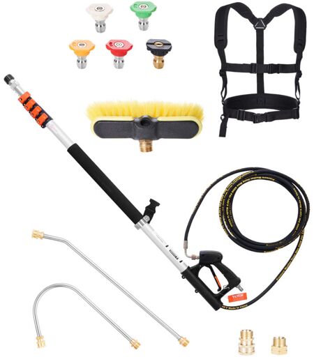 VEVOR - Lancia Telescopica per Idropulitrice, 5437 mm, 275 bar, Lancia Telescopica con Prolunghe, Pulitore per Grondaie, Testina Spazzola, 5 Ugelli