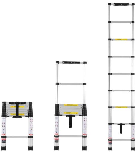 VEVOR Scala Telescopica, Scala Estensibile Leggera in Alluminio 2600 mm, Scala Pieghevole con Retrazione a un Pulsante,, Capacita 170 kg con Piedini