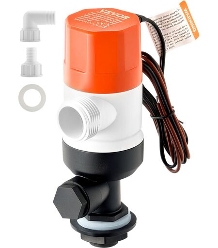 VEVOR Pompa per Pozzi Vivi per Barche, Pompa Aeratrice per Pozzi Vivi Dritta da 12 v e 50,47/min con Doppio Ingresso, Alloggiamento aba e Cartuccia Motore