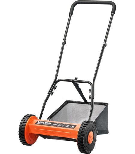 VEVOR Tosaerba a Spinta Manuale con 5 Lame Larghezza di Taglio 350 mm, Senza Motore, Altezza di Taglio Regolabile da 15 - 45 mm, Rasaerba a Spinta con