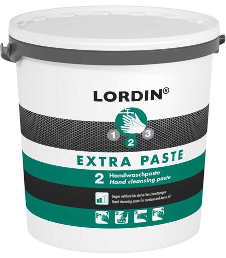 Descrizione Esecuzione: LORDIN® EXTRA PASTE. Pasta lavamani con sostanze esfolianti naturali per sporco ostinato da medio a forte. Campi di impiego: oli, grasso, polvere di metallo, fuliggine. Caratteristiche: pasta, dermoprotettiva. Contenuto: Secchio da 10 l. Dati tecnici Grado di sporcizia Sporco ostinato Tipo di prodotto Pulizia della pelle Serie Lordin® Contenuto, ml 10.000 Per densità di sedimenti da medio a intenso Pericolo da grassi sì Pericolo da polvere di metallo sì Pericolo da oli sì Pericolo da fuliggine sì Confezione Secchiello Tipo Pasta Con esfolianti sì ...