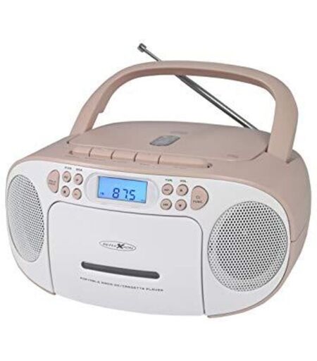 REFLEXION RCR2260 - Lettore cd de con cassetta e radio per alimentazione e batteria (pll fm, display lcd, Aux-in, jack per cuffie), colore bianco e rosa