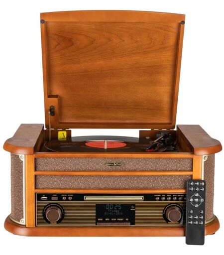 Giradischi con altoparlante: giradischi semiautomatico a 3 velocità (33/45/78 giri/min.) Radio d'epoca: impianto Hi-Fi con lettore CD, radio nostalgica, sintonizzatore FM e MW, tasti grandi per una facile ricerca delle stazioni Sintonizzatore DAB/DAB+ e FM per la ricezione de di stazioni radio digitali DAB e analogiche de FM Lettore di cassette + CD de: riproduzione delle vecchie cassette preferite. Lettore CD/MP3 de (CDA CD-R CD-RW), porta USB, presa per cuffie Funzione di codifica: riproduzione di dischi dede vinili/cassette/CD/DAB+ in formato MP3 su USB In dotazione: sistema compatto, telecomando, manuale di istruzioni de ...