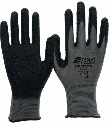 Guanto protettivo>> Nylotex 3520 < Dorso di mano materiale non rivestito: nylon, nero lattice rivestimento parziale colore: grigio ...