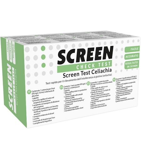 SCREEN CHECK TEST - Screen Test Celiachia - Descrizione Test rapido immunocromatografico che può essere utilizzato come ausilio nella diagnosi dell'intolleranza al glutine. Rileva gli anticorpi anti - transglutaminasi (tTG) IgA da un campione di sangue intero. Se sono presenti anticorpi anti - tTGA… ...