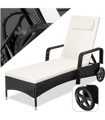 TECTAKE - Lettino prendisole in rattan con ruote - sdraio, sdraio da giardino, lettino mare