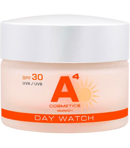 L'A4 Day Watch è un trattamento anti-età più una protezione quotidiana UVA/UVB contro l'invecchiamento della pelle indotto dalla luce (SPF 20). La crema da giorno agisce come uno scudo protettivo contro l'invecchiamento prematuro della pelle indotto dalla luce, come rughe e iperpigmentazione, perdita di idratazione e compattezza. Soprattutto in estate e nei paesi con un'intensa esposizione al sole, A4 Day Watch Day Cream aiuta a lasciare sempre un'impressione di freschezza e a proteggere la pelle. Una combinazione di principi attivi a base naturale protegge dai danni causati dalla luce, rafforza la rigenerazione e sostiene la naturale disintossicazione delle cellule della pelle. A4 Day Watch Day Cream è adatto a tutti i tipi di pelle. Applicazione: Si dovrebbe applicare la crema da giorno al mattino su viso e collo puliti. Ricordatevi di riapplicare regolarmente, soprattutto dopo il bagno e l'esercizio fisico! Per la sera, consigliamo la crema da notte A4 Night Watch. Ingredienti principali: A4 Day Watch Day Cream contiene principi attivi selezionati a base naturale e protegge dall'esposizione al sole con il fattore di protezione solare 20 (SPF): L'olio di argan eco-certificato aiuta a ridurre visivamente le rughe.L'olio di avocado da coltivazione biologica certificata è in grado di rafforzare la funzione di barriera della pelle.Il burro di karité fatto a mano, non raffinato e certificato biologico supporta la rigenerazione della pelle.Una combinazione di principi attivi di acido ferulico (dal riso), acido carnolico (dall'estratto di rosmarino) e un fosfato (dalla barbabietola da zucchero) aiuta a proteggere le cellule della pelle dai danni indotti dalla luce.Un sistema antiossidante promuove una protezione 24 ore su 24 contro i radicali liberi, neutralizzandoli prima che possano danneggiare le giovani cellule della pelle.Un estratto di crescione svizzero coltivato biologicamente aiuta a stimolare la disintossicazione naturale della pelle, a bloccare la formazione di melanina e a prevenire i cambiamenti di colore.L'acido ialuronico eco-certificato idrata intensamente la pelle e previene le sensazioni di tensione e prurito sulla pelle.Compatibilità con la pelle: La crema da giorno A4 Day Watch è adatta a tutti i tipi di pelle. Noi non usiamo: ParaffineSiliconiSLES/SLSVaselinaParabeniLiberatori di formaldeideA4 COSMETICS Skin Care - Cosmetici attivi su base naturale Cura della pelle attivante di A4 COSMETICS Skin Care. Sentiti completamente a tuo agio nella tua pelle - con un trattamento a base naturale altamente efficace e compatibile con la pelle, che protegge e vitalizza visibilmente la tua pelle. La cura della pelle ad attivazione naturale evita deliberatamente siliconi, parabeni e sostanze chimiche attive a livello ormonale. Invece, A4 COSMETICS Skin Care si affida a principi attivi naturali come quelli contenuti nell'olio di avocado e di argan, nell'aloe vera o nel burro di karité. Scopri i nostri efficaci prodotti per la cura della tua pelle... ...