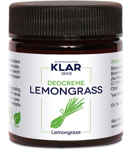 Il Deo Cream Lemongrass di Klar protegge dai cattivi odori e si prende cura della pelle sensibile sotto le ascelle. Il burro di karité, l'olio di mandorle e di cocco garantiscono una facile applicazione della crema deodorante. Questi ingredienti nutrienti e l'assenza di conservanti e siliconi rendono la crema deodorante adatta alle pelli sensibili. Abbiamo deliberatamente evitato i sali di alluminio, l'olio di palma e l'alcol; al loro posto, ingredienti naturali come il bicarbonato e lo zinco riducono la produzione di sudore. La crema deodorante può essere utilizzata direttamente dopo la rasatura. con olio essenziale di citronelladelicato sulla pelle ULTERIORI INFORMAZIONI SUL PRODOTTO La nostra pelle ha sempre bisogno di un po' di tempo per abituarsi a un nuovo prodotto. Pertanto, poco dopo il passaggio a una crema deodorante senza alluminio, è possibile che si verifichi un aumento della sudorazione e dei cattivi odori. Tuttavia, questo fenomeno si attenua dopo qualche giorno di utilizzo. PROFUMO ED EFFETTO Profumo: agrumato-fresco Effetto: previene la sudorazione, neutralizza gli odori e cura la pelle. ISTRUZIONI PER L'USO Applicare una quantità di crema deodorante della grandezza di un pisello sotto le ascelle appena lavate e strofinare. La crema deodorante di Klar offre una protezione per tutto il giorno. Conservare la crema deodorante in un luogo fresco. ...