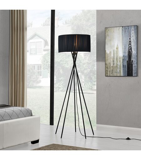 LUX.PRO Lampada da Terra 'Black Mikado' Alta 155 cm Piantana a 5 Piedi con Paralume Cilindrico in Tessuto Decorativo Nero